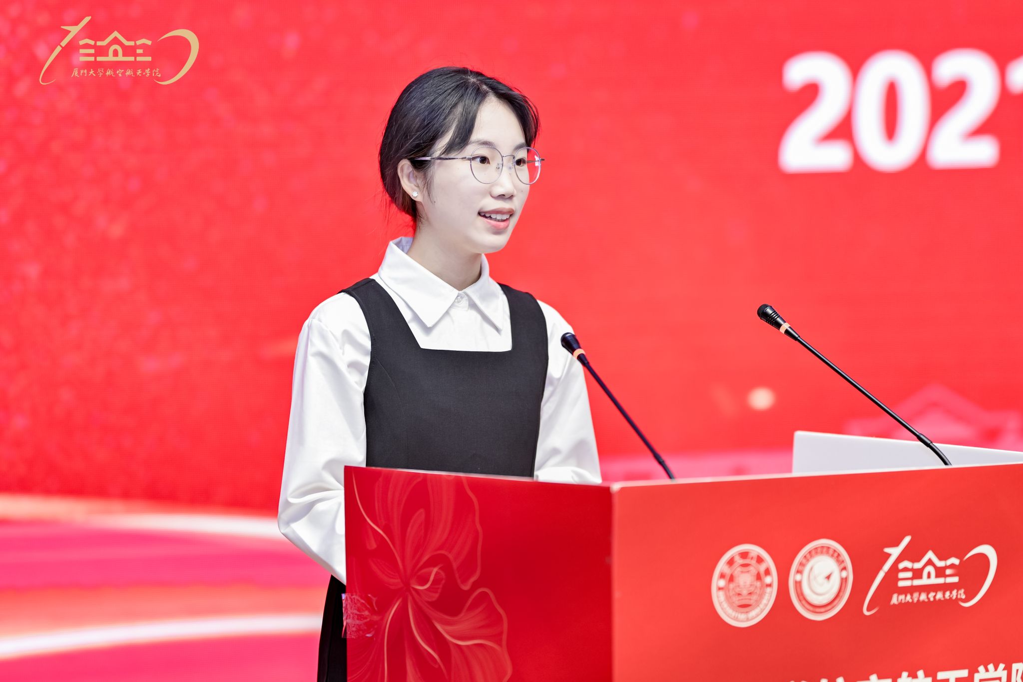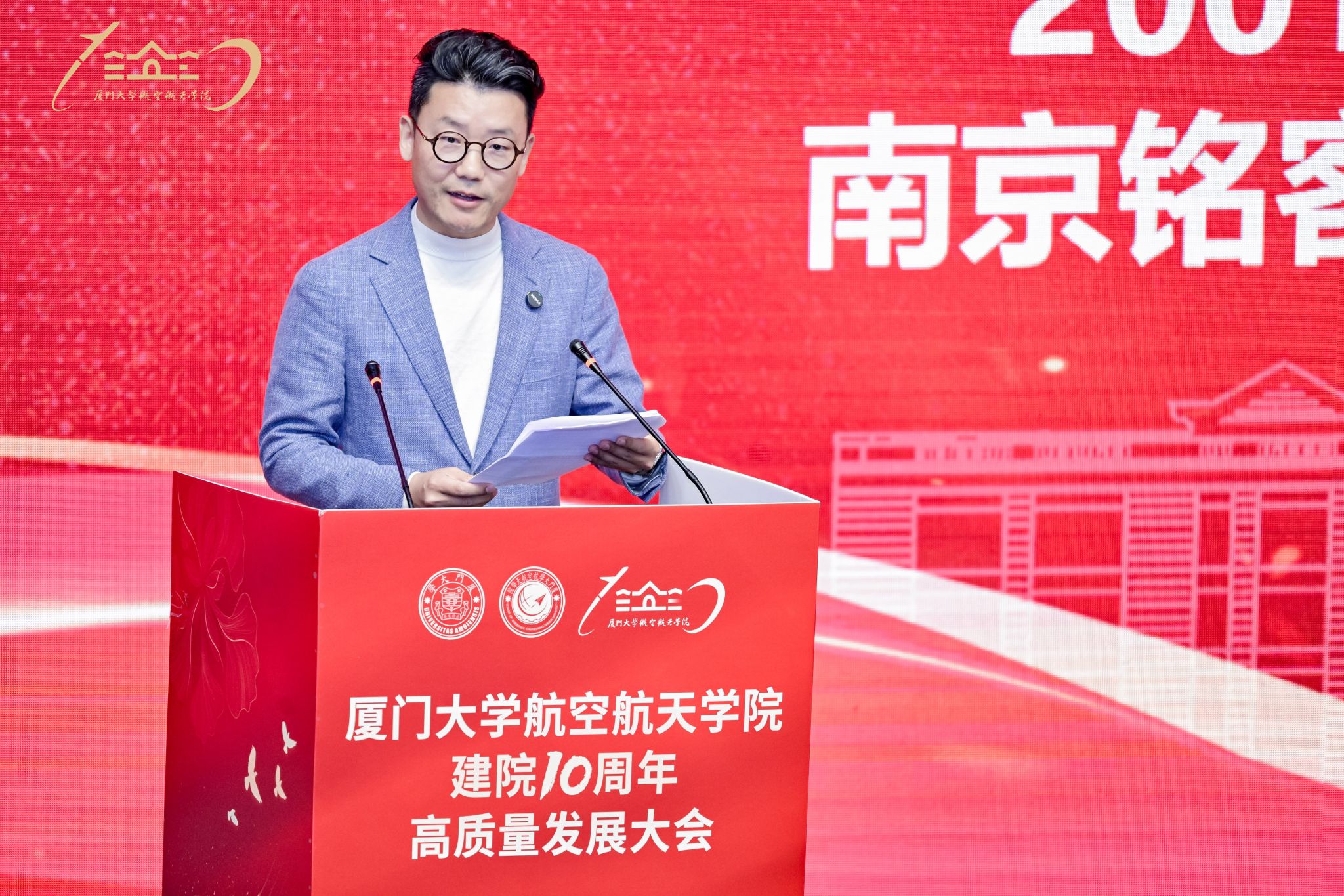 1985级系统工程专业毕业生、厦门路桥信息股份有限公司董事长于征作为校友代表发言。他用四个生动的故事,声情并茂地回溯了读书期间学院教育对自己成长成才的引领、创业过程中学院师长对自己提供的帮助。他呼吁各位校友,继续关心和支持学院的建设与发展,反哺母校母院。2001级飞机工程专业毕业生、南京铭客传动系统有限公司董事长林国栋讲述了他在母校的求学经历以及在基础制造业领域创业的心路历程,勉励学弟学妹们在成长过程中既要有“嘉庚一号”直冲云霄的锐气,也要有“风洞实验”精益求精的匠心,并祝愿母院蒸蒸日上、锻造更多“国之重器”。