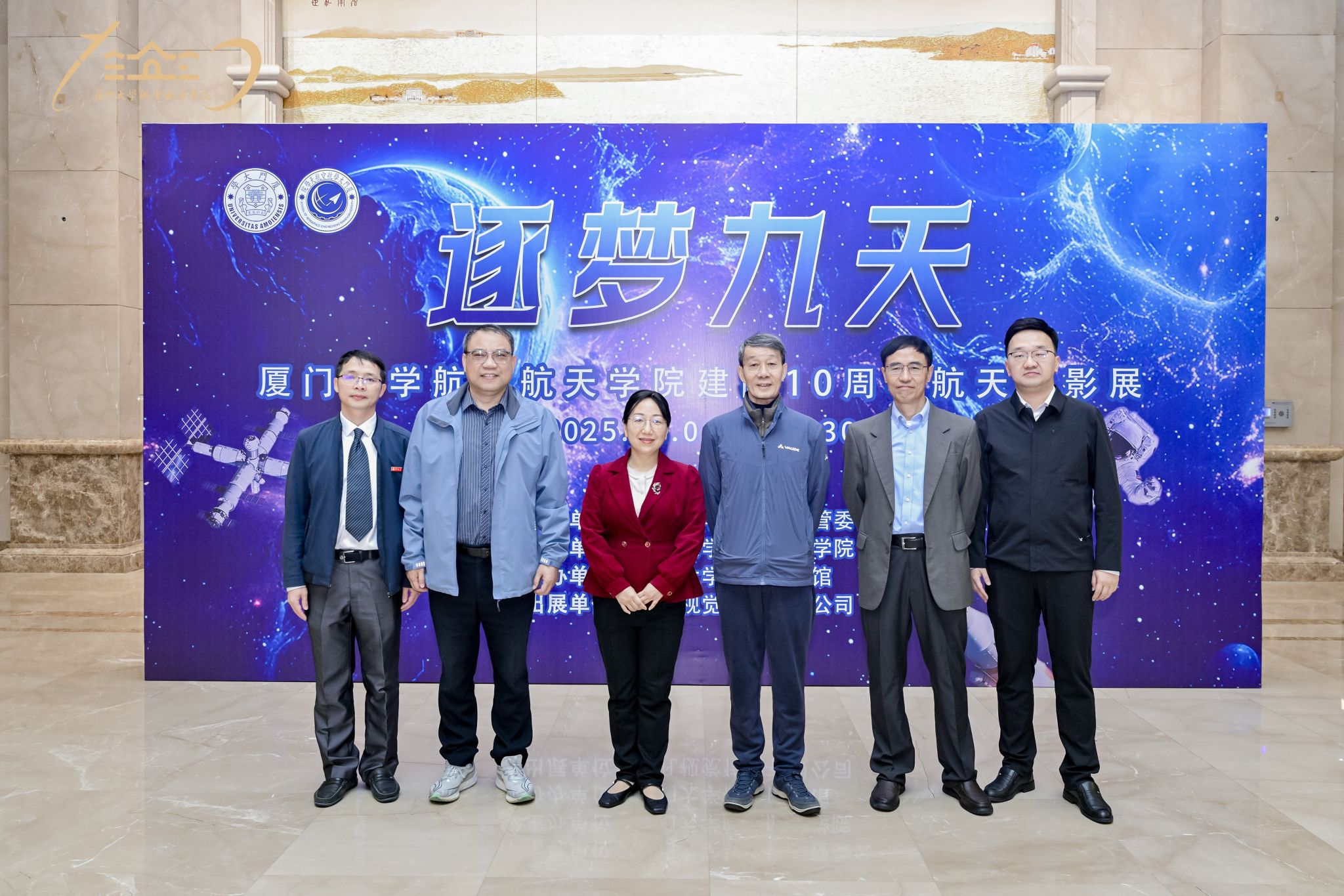 会前,与会嘉宾共同前往新工科研发大楼参观航空航天学院科研成果展并参加在德旺图书馆北厅举行的学院建院10周年航天摄影展揭幕式。闽南师范大学党委副书记、厦门大学航空航天学院党委原书记廖志丹,摄影展作者、著名摄影师陈忠和,厦门大学航空航天学院副院长王奕首,国家高层次人才、厦门大学南强特聘教授罗华耿共同为摄影展揭幕。航天摄影展揭幕式由航空航天学院党委副书记王寒主持。
