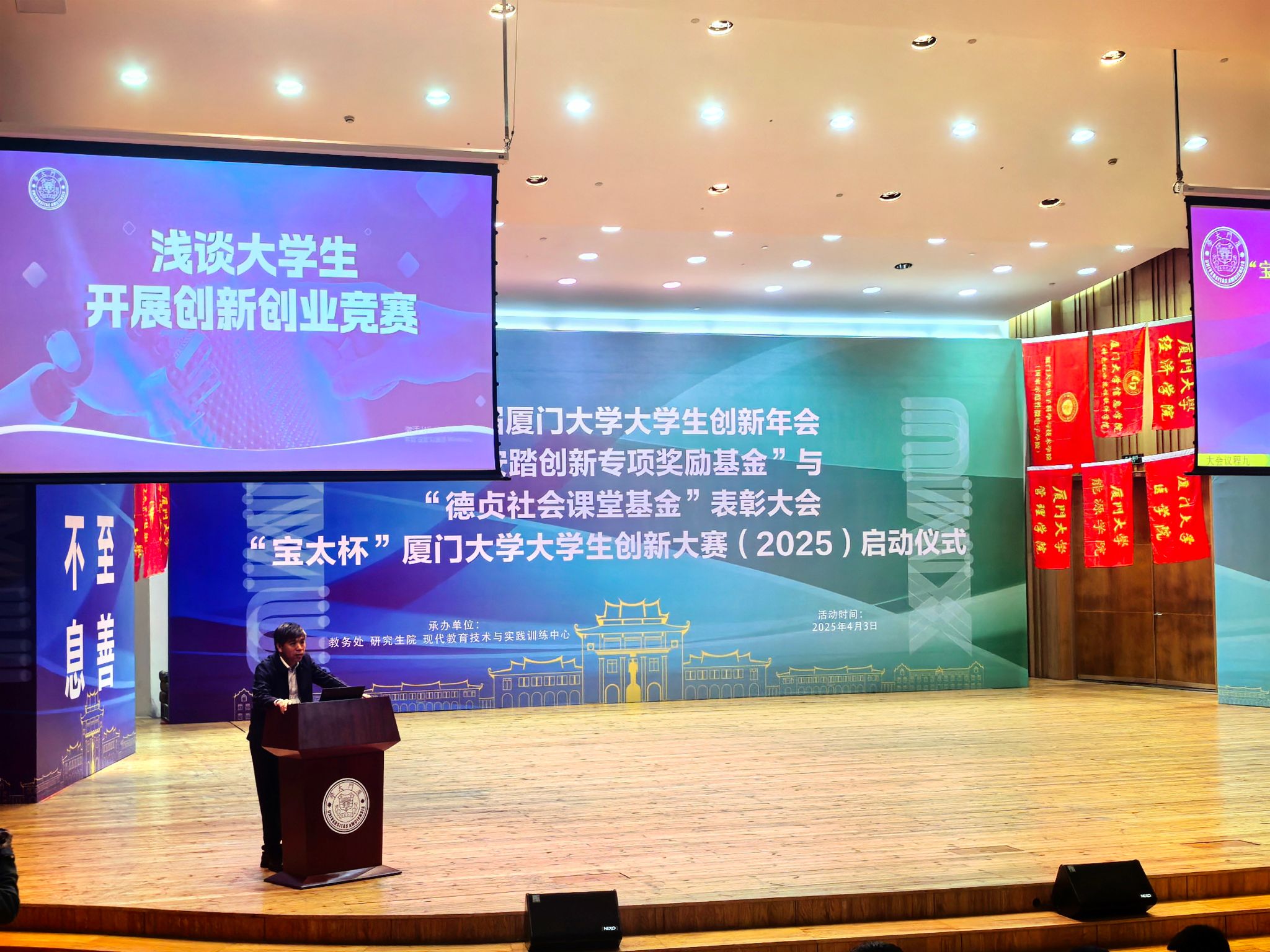 4月3日下午,学校举行第九届厦门大学大学生创新与创业年会暨“安踏创新专项奖励基金”与“德贞社会课堂基金”表彰大会、“宝太杯”厦门大学大学生创新大赛(2025)启动仪式。大会对2024年度科创竞赛先进集体和个人进行表彰,副校长方颖出席并致辞。我院党委副书记林蔚、副院长王奕首、工程管理中心主任刘万山等师生代表参会。