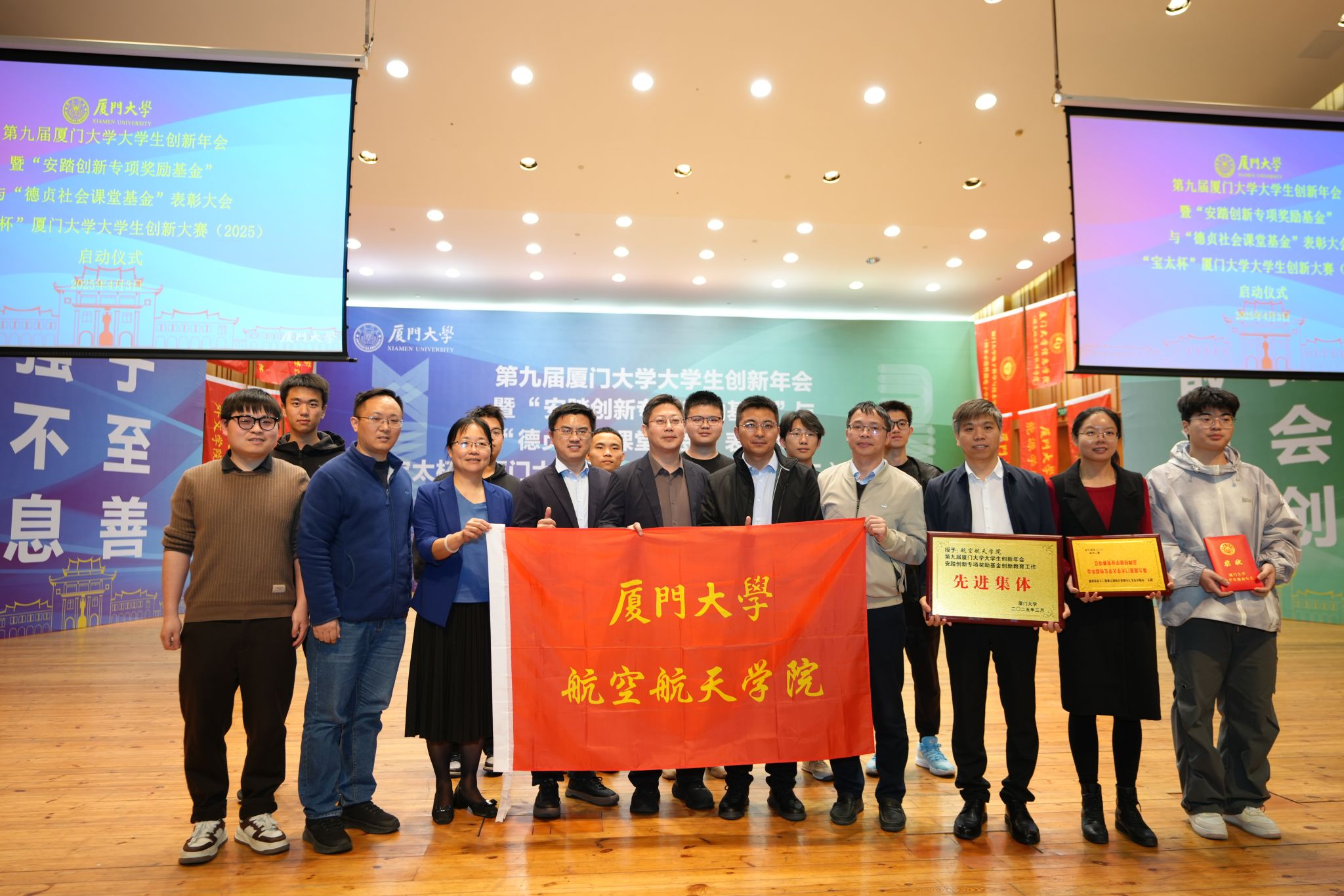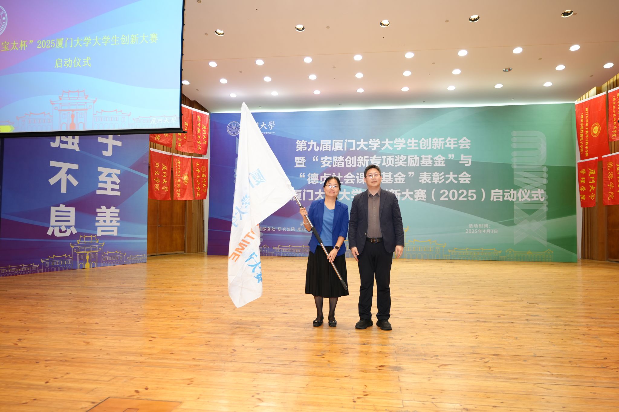 会上,举行了“宝太杯”厦门大学大学生创新大赛(2025)启动仪式,本届赛事将继续由航空航天学院承办,林蔚代表学院接受大赛赛旗,这也是我院第四年承办该赛事。