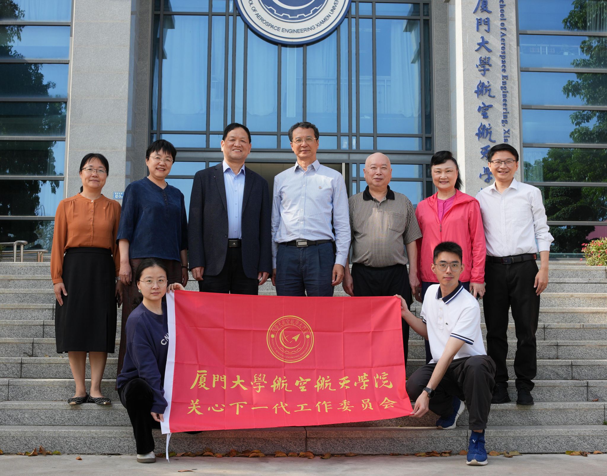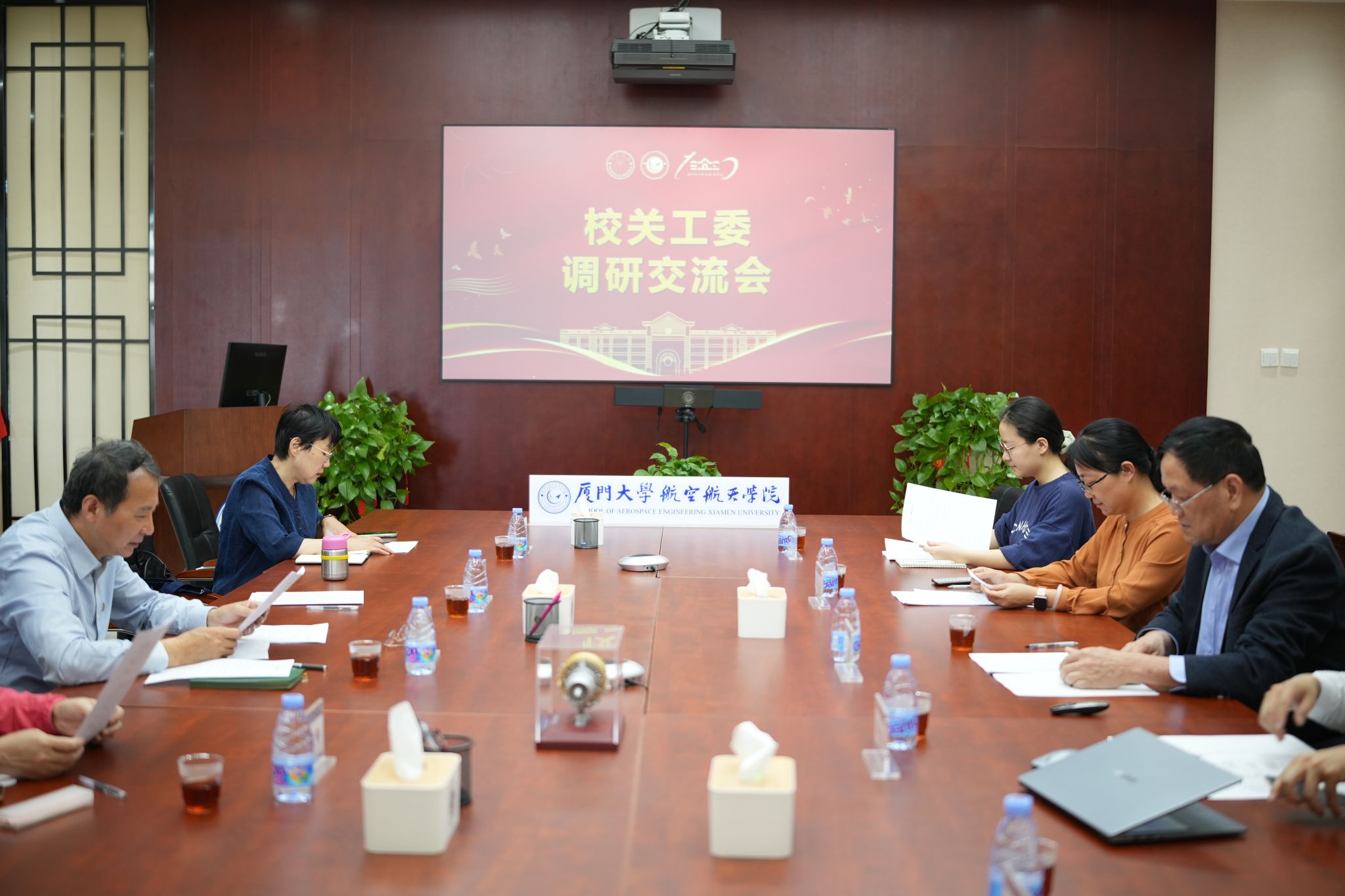 4月15日 下午 , 厦门大学关工委常务副主任赖虹凯,副主任邵鹏飞、侯莲娜,秘书张红疆一行莅临航空航天学院,深入 调研指导学院关工委工作。 学院关工委常务副主任洪永强,党委副书记林蔚,团委书记兼关工委秘书郭江淮,以及关工委学生委员张思韫、沈子乔参加此次调研交流。