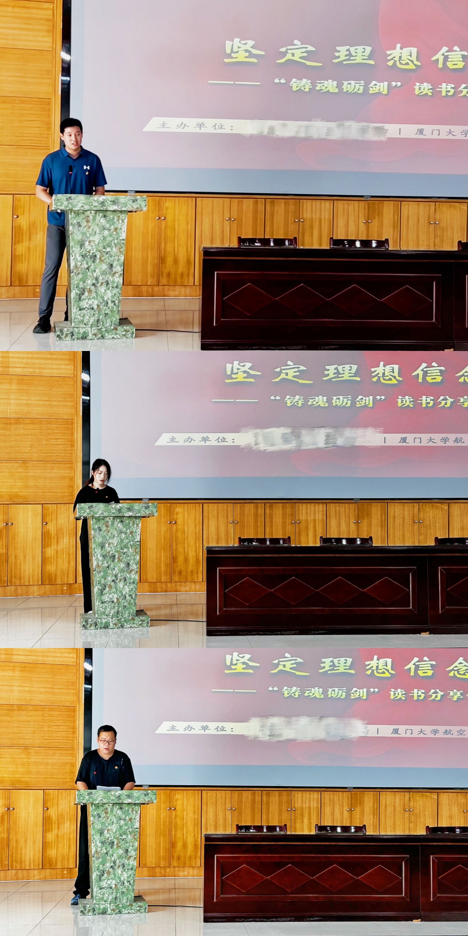 听完官兵们的分享,师生们也积极分享自己的感想。林威丞结合《习近平关于加强党的作风建设论述摘编》分享感悟。他表示,此次参访收获颇丰,不仅加深了对党的作风建设的理解,也让自己对辅导员工作、坚定理想信念以及厦门大学航空航天学院“空天报国”的理念有了更清晰的认识。他将以中央八项规定精神为准则,严格要求自己,做到廉洁奉公、勤勉敬业,以更饱满的热情投入工作,用良好的作风影响学生,以坚定的信念引领学生。他坚信,在大家的共同努力下,学院学生定能成长为品德高尚、专业扎实、爱国情怀浓厚的优秀人才,为实现中华民族伟大复兴的中国梦贡献力量。2024 级先进空天动力工程研究中心团支部成员、2024 级航空发动机工程硕士研究生赵芳玲说:“今天,站在这片满是热血与忠诚的土地上,天空蓝与迷彩绿交汇,青年学子与钢铁长城对话,我深刻感受到,我们手中捧着的不只是书本,更是未来战鹰的蓝图;书写的不只是公式,更是强军报国的誓言!作为新时代青年学生,我们肩负重要历史使命。未来,我将以部队战士们坚韧不拔、无私奉献的精神为榜样,坚定理想信念,努力学习!”科创先锋党支部成员、2021 级飞行器动力工程本科生张岽城分享了学习《闽山闽水物华新——习近平福建足迹》的感悟。他提到,新时代青年生活在物质丰富、教育资源优越的时代,更应珍惜机会,坚定理想信念。要像习近平总书记那样,把个人理想追求融入国家和民族事业,用知识武装头脑,用信念指引方向。无论是学习知识还是锤炼品德,都要以“为中华之崛起而读书”为己任,努力成为有理想、有本领、有担当的社会主义建设者和接班人。