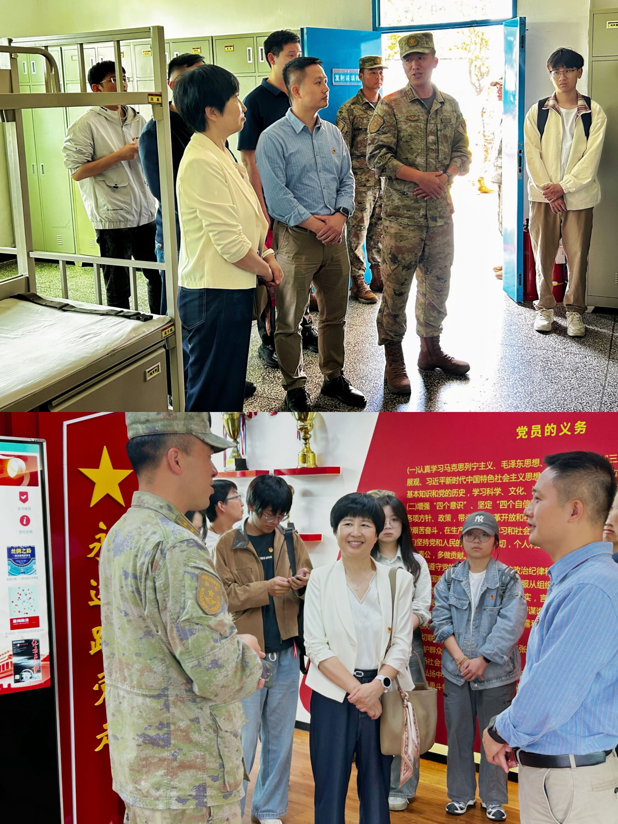 交流结束后,官兵们带领师生参观了营区宿舍、阅读室、党员活动室等场所。干净整洁的生活环境、井然有序的日常管理以及浓厚的学习氛围,展现出新时代军营的良好风貌,让师生们对官兵严谨自律、刻苦训练的精神有了更直观、更深刻的认识。