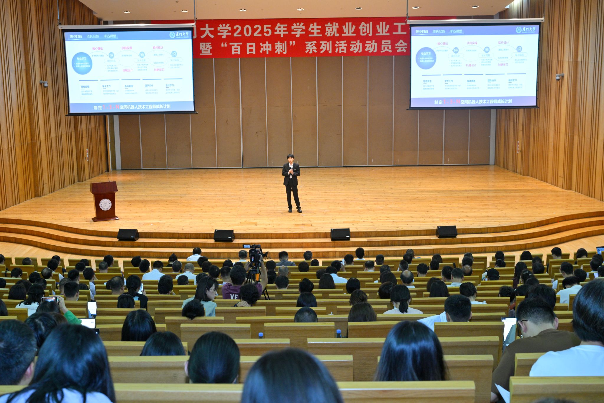 会上,第二届全国大学生职业规划大赛国赛金奖获得者,航空航天学院2022级本科生王贺阳,以《机启星辰探寰宇,科技助力航天梦》为题,分享了他矢志成为空间机器人技术工程师的职业探索之路。
