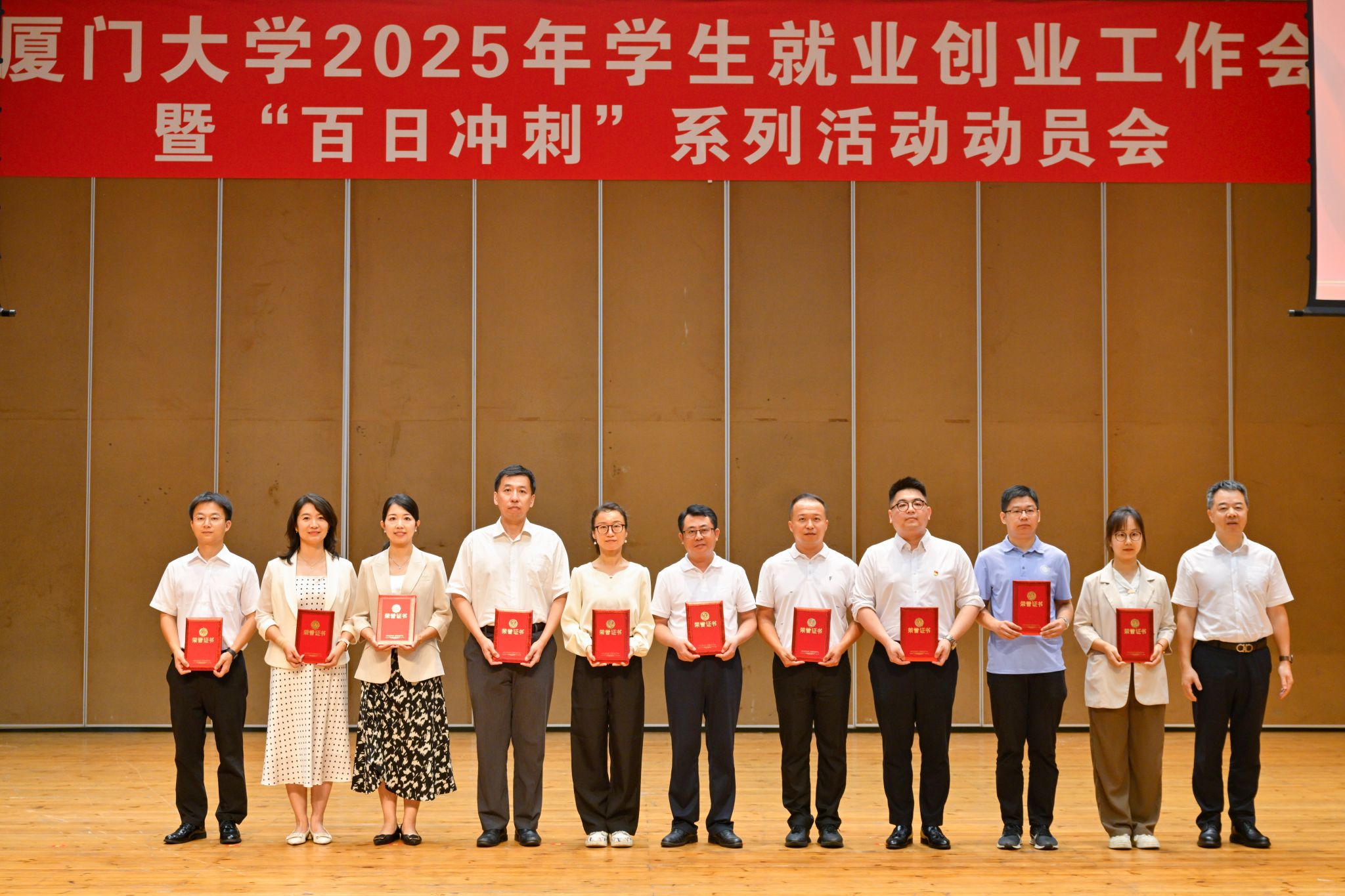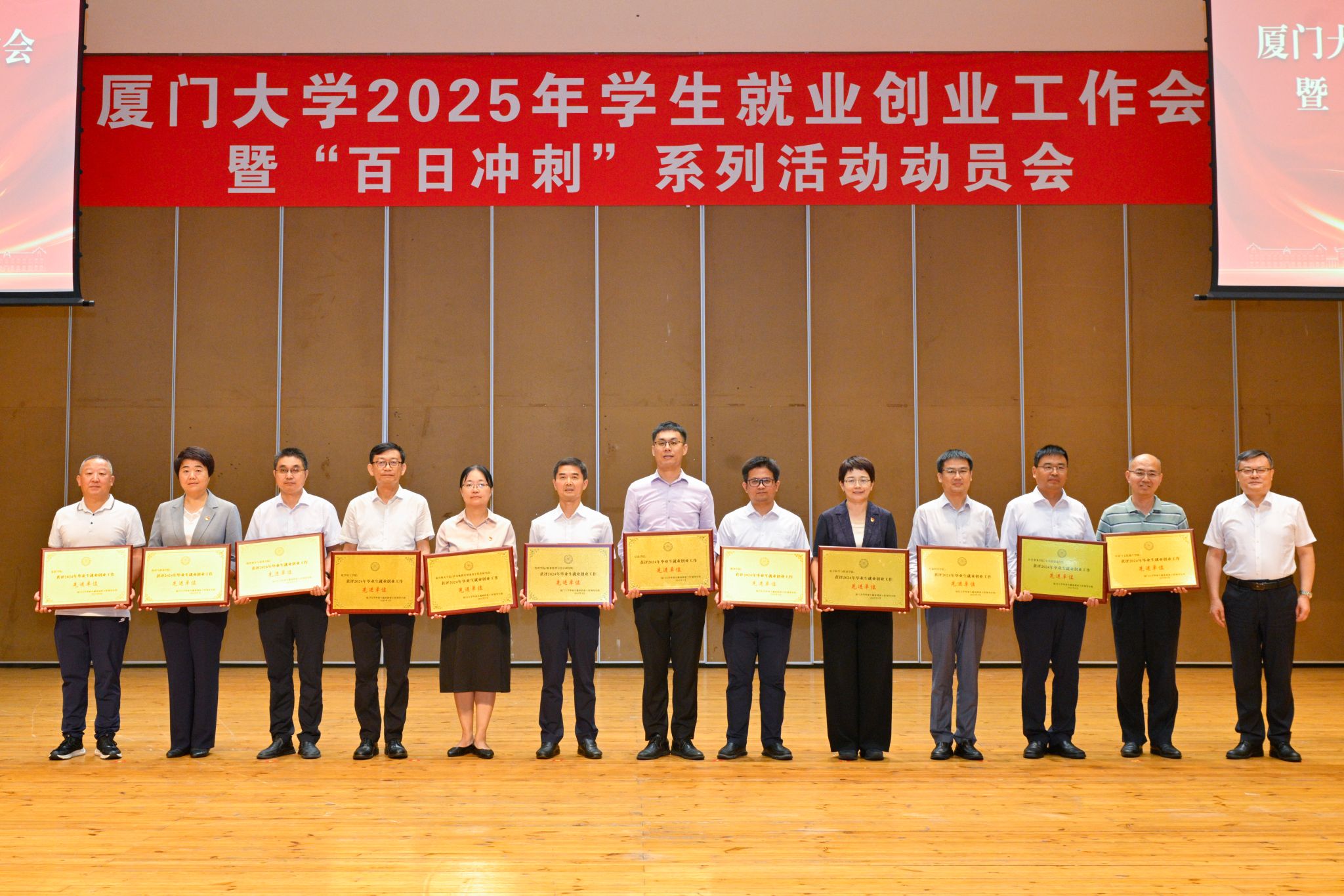 5月19日下午,厦门大学2025年学生就业创业工作会在科学艺术中心音乐厅举办。校党委书记、中国科学院院士张荣,校党委副书记、组织部部长孙理,校长助理、研究生院常务副院长谢兆雄等领导出席会议。航空航天学院在2024年毕业生就业创业工作中成绩显著,荣获厦门大学2024年“学生就业创业工作先进单位”二等奖。自该奖项设立以来,学院已经连续四年斩获该荣誉。学院党委副书记林蔚荣获“就业指导先进个人奖”、团委副书记倪建超荣获“就业成果先进个人奖”、工会主席殷春平荣获第一批厦门大学“就业引航名师”提名奖。