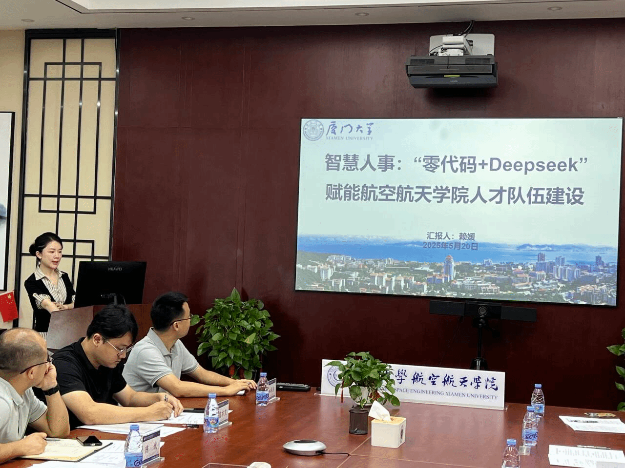学院还对即将投入使用的智慧人事系统进行了实景应用展示,并介绍了目前已构建的“智慧航院”年度考核系统、一站式智慧社区、智慧人事系统三位一体的“AI+人才培育”智慧平台。智慧人事系统基于“零代码+DeepSeek”技术,针对“人事决策需要什么”“教师发展需要什么”两大痛点,设计了人才梯队现状看板和教师发展指引看板,可从多维度进行智慧使用、智慧管理和智慧评价。该系统具有业绩数据一次录入多场景使用、一键匹配分类分级指标、模型赋值动态更新、知识库+AI进行政策解读和提供发展建议等优势,能够有效赋能新时期有组织的人才队伍建设。