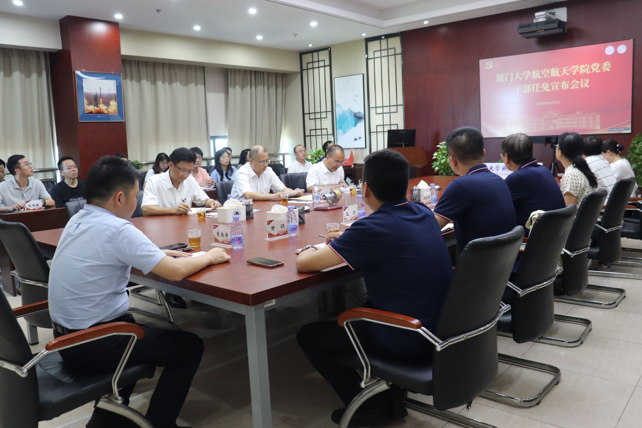 6月27日下午,校党委在航空航天大楼501会议室召开航空航天学院党委干部任免宣布会议。校党委常务副书记林东伟,校党委常委、组织部部长黎永强,航空航天学院、萨本栋微米纳米科学技术研究院党政领导班子成员、党委委员参加会议。会议由黎永强主持。