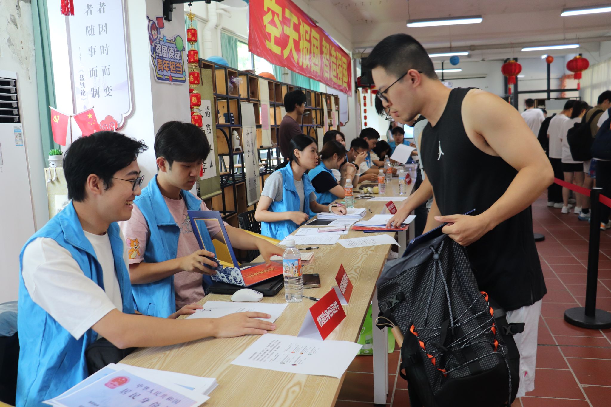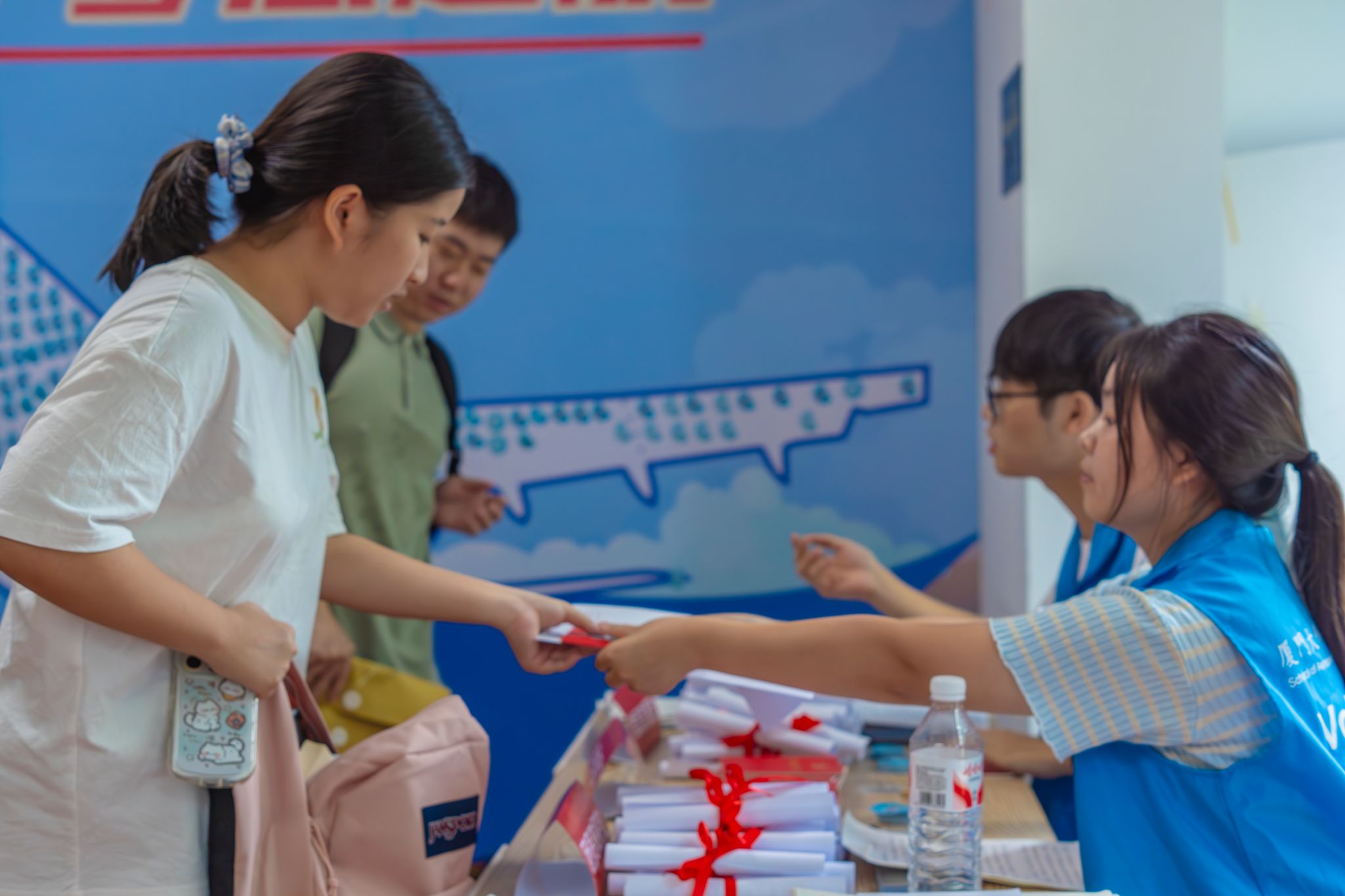 报到当天,新生们满怀热忱,主动向学院递交入党申请书、入团申请书,仪式感满满。在 “空天报国 梦想起航”的大飞机上郑重贴上专属纪念章,这一枚小小的印章,不仅是青春足迹的留存,更见证着 “空天报国” 的种子,在厦大航院这片沃土悄然萌芽、蓬勃生长。