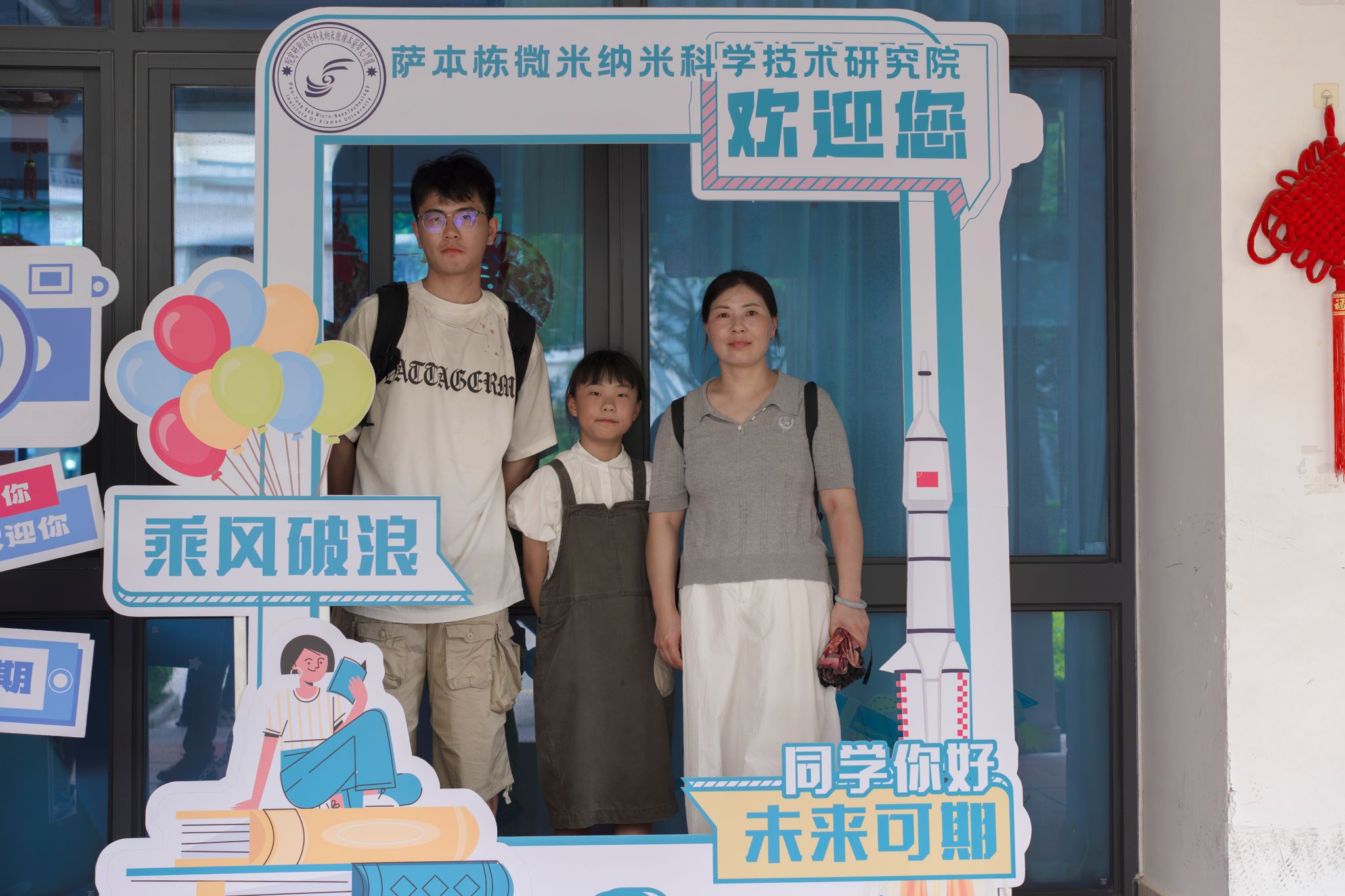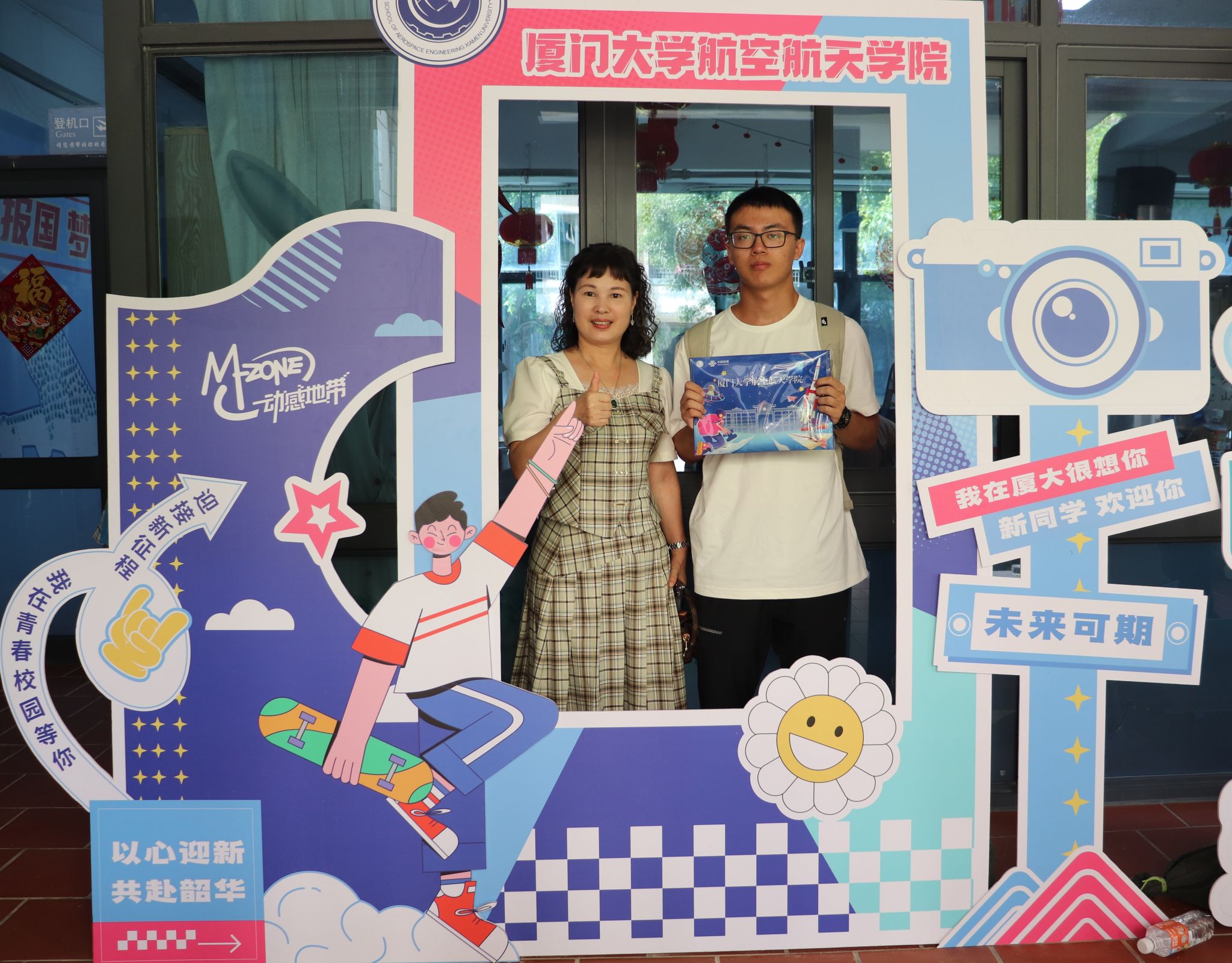 当青春与空天相遇,当憧憬照进现实。明亮色彩搭配校园元素,合影墙下与厦园的第一张合影,一家人并肩打卡,把入学的喜悦、对未来的期待,都定格在珍贵的画面里。