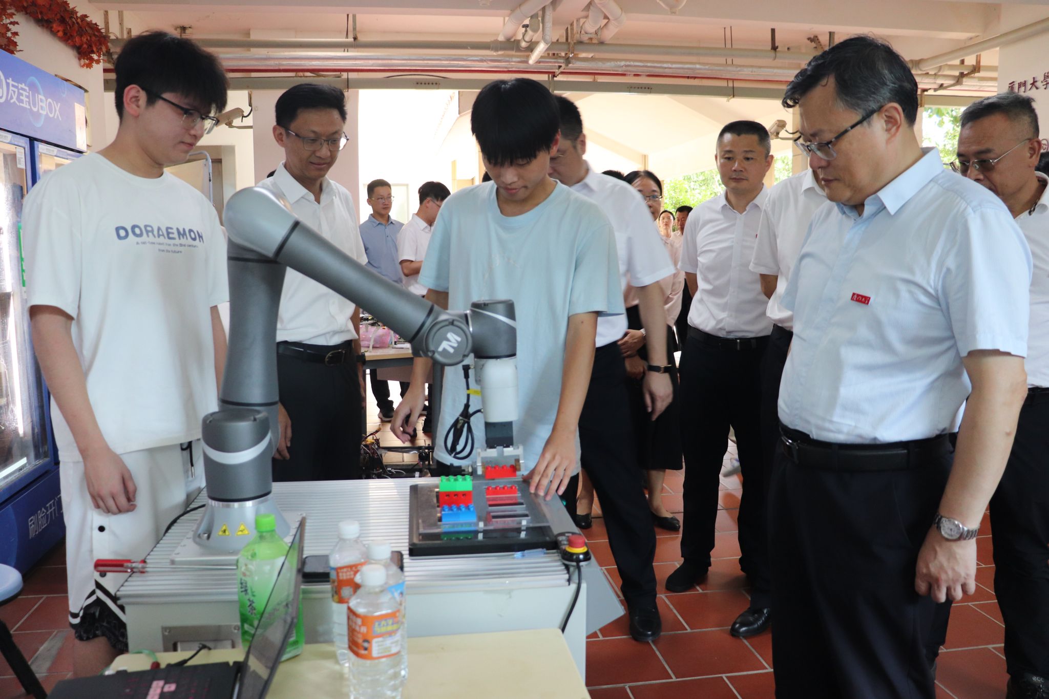 29日上午,校党委书记、中国科学院院士张荣,校党委副书记孙理,副校长李智勇,校长助理陈怀锋一行来到航院迎新注册点,参观航院科创展示区、与2025级新生和家长面对面交流、慰问参与新生报到工作的志愿者们。无人机灵动机敏,智能车穿梭跑道……在科创展示区,一场场炫酷的高科技演示接连上演。