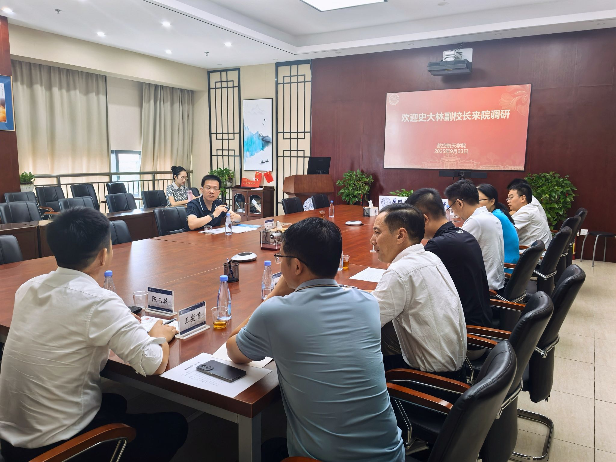 9月23日上午,史大林副校长到航空航天学院开展工作调研。航空航天学院党委书记袁国柱,党委副书记林蔚、王寒,副院长黄玥、王奕首、曾念寅,教师代表、行政人员代表参加调研会。会议由袁国柱主持。