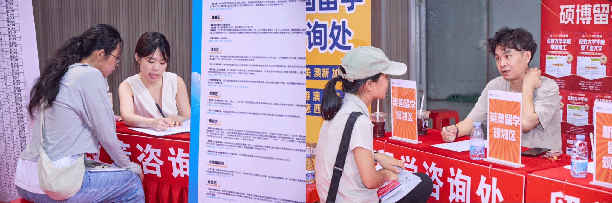 与此同时,出国(境)留学咨询指导专区同样人气高涨。针对有海外深造计划的同学,指导老师围绕院校专业筛选、申请材料准备、个人陈述撰写等关键环节,提供了专业且系统的分析与建议。通过细致解答留学申请中的常见疑问,帮助同学们更清晰地规划留学路径,从容应对申请过程中的挑战,为海外深造做好充分准备。