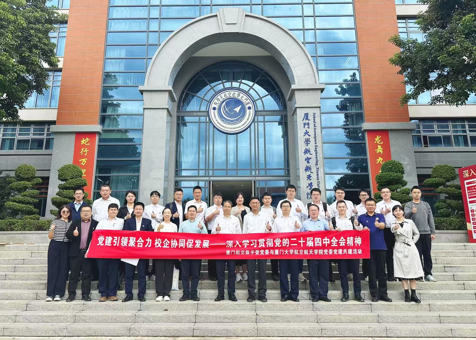 为深入学习贯彻党的二十届四中全会精神,积极探索以高质量党建引领高质量发展的新路径,11月13日,航空航天学院党委联合厦航数字委党委举办“党建引领聚合力 校企协同促发展”党建共建活动。学院党委书记袁国柱、副院长曾念寅、党委委员洪文兴,厦航数字委党委书记陈鹰、科技创新处经理黄江燕、运行安全开发处经理余胜、流程优化处经理许乔若,以及双方单位科研、技术骨干共30余人参加活动。