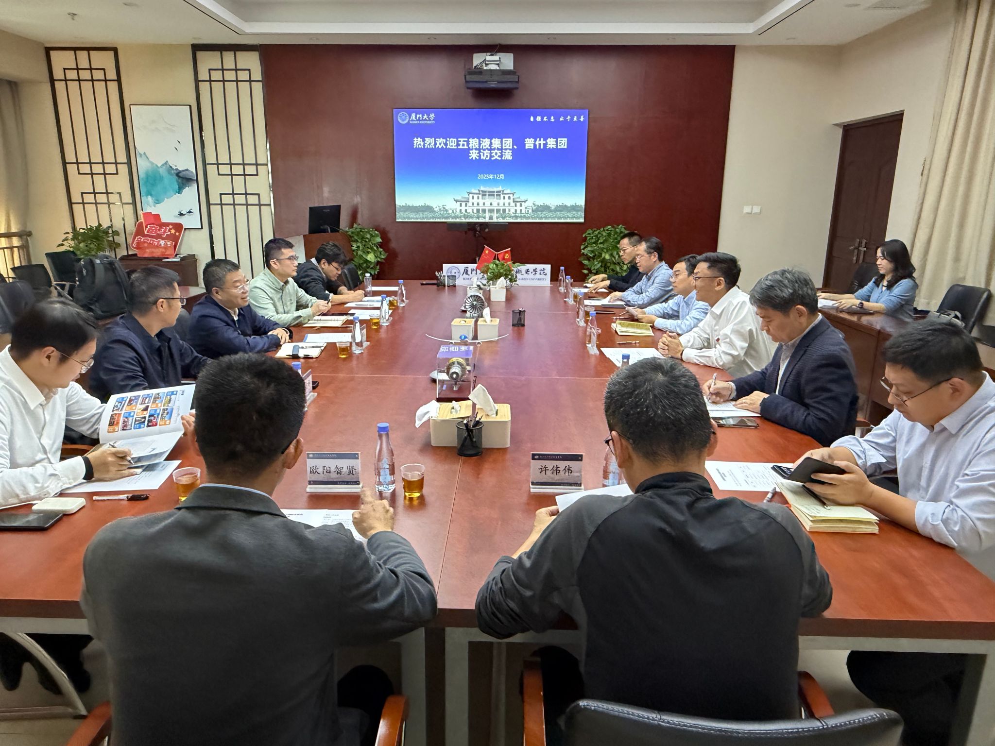 蒋文春表示,普什集团作为五粮液集团的全资子集团公司,核心布局“新包装”“新材料”“智能制造”“新能源汽车配套”四大事业群,是一家集现代化、多元化、国际化为一体的高科技企业集团。厦门大学在低空经济、智能制造、绿色能源等领域的科研优势与人才储备,与普什集团电动化、智能化、绿色化、轻量化的战略需求高度契合,此次回访旨在将前期达成的合作意向转化为具体行动,在战略协同、人才培育与招聘、智力合作、科技研发、资本与成果转化合作等方面进一步明确合作路径,精准对接产业发展需求。