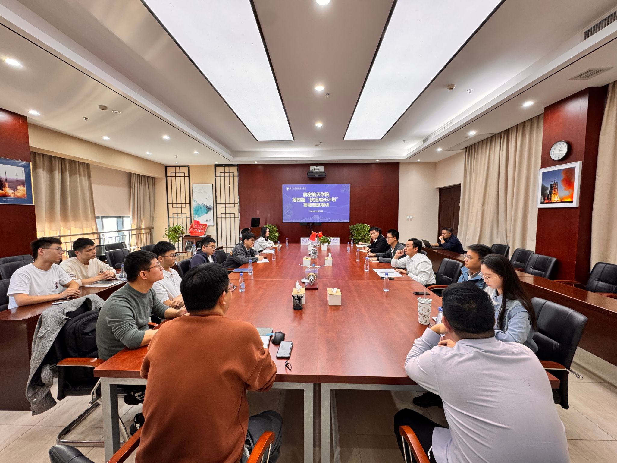 为加强科研规范管理,助力青年教师成长,12月10日下午,航空航天学院在航院大楼501会议室举办第四期“扶摇成长计划”蓄能启航培训。本次培训围绕科研投标规范、合同管理、知识产权保护等实务内容展开,并设置青年教师科研时间和成长经验分享环节。学院青年教师代表、行政支撑中心代表参加培训会,会议由学院副院长黄玥主持。