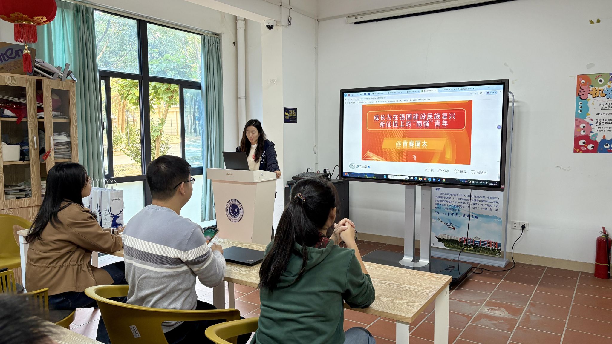 为学习领会共青团厦门大学第十六次代表大会精神,凝聚青年共识、激发青春动能,12月23日中午,航空航天学院团委在映雪五“一站式”学生社区举办团代会报告学习辅导专题团课。学院团委副书记倪建超、董佳闻、赵晴晴出席活动,2024级硕士研究生骆锟宏主持学习。