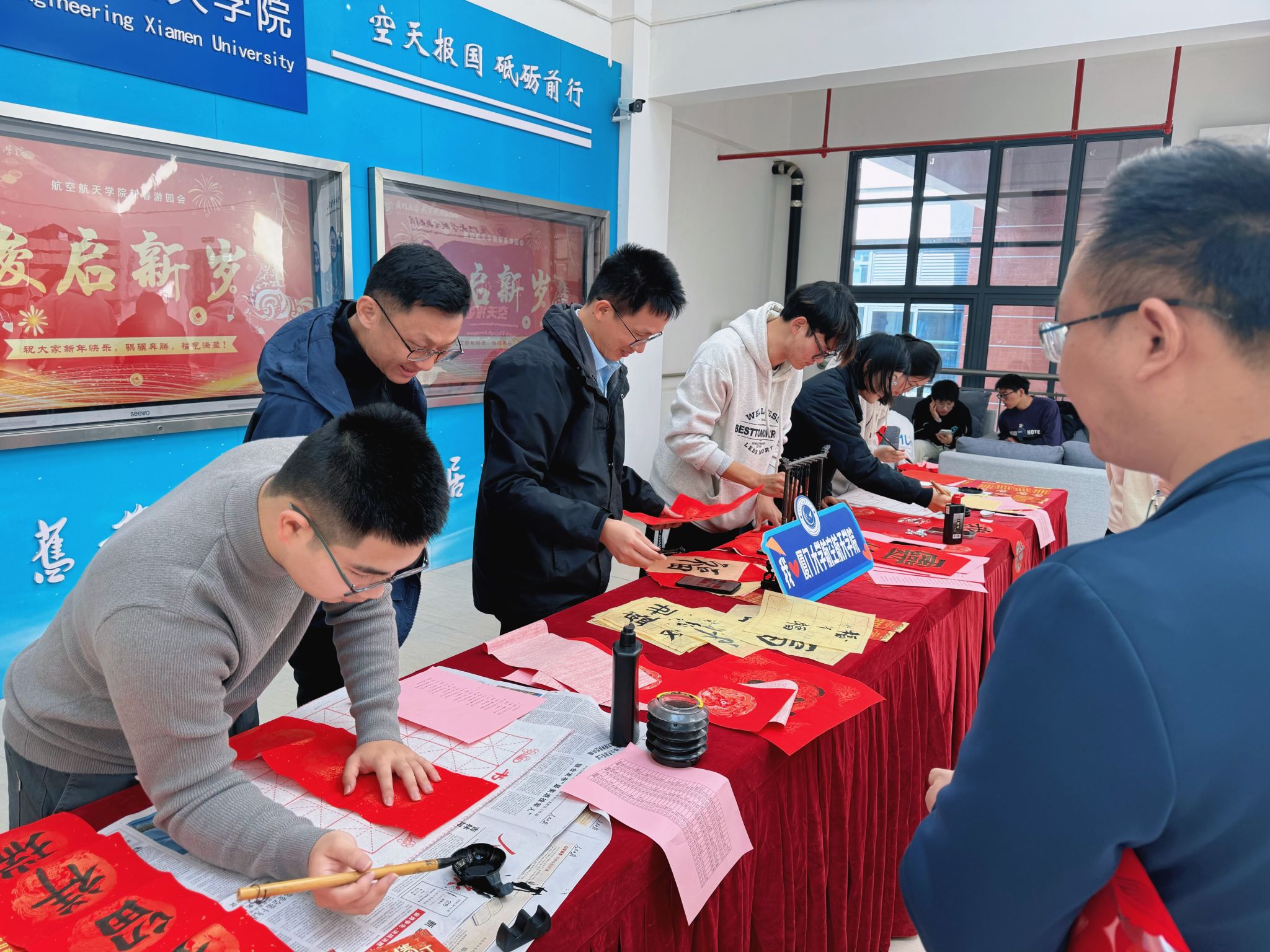 会后,学院在航空航天大楼中庭举办新春团拜会,设置手写春联、猜灯谜等趣味互动环节,向全体教职工送上新春祝福。现场欢声笑语、其乐融融,洋溢着温馨祥和的迎春氛围。