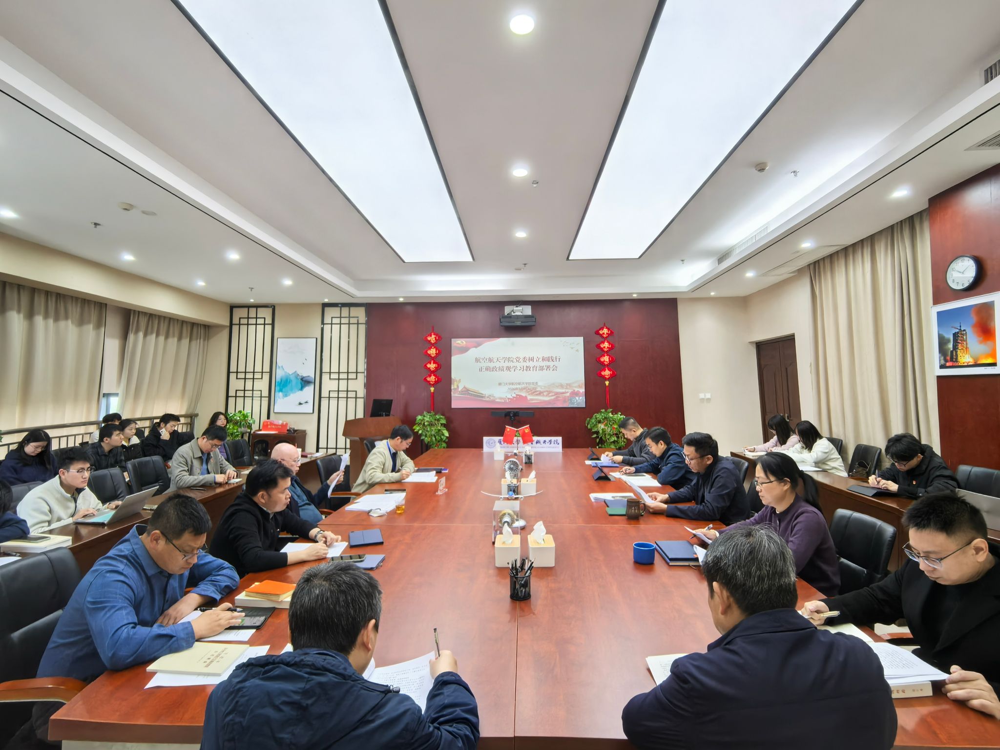 3月9日上午,航空航天学院党委在航院大楼501会议室部署启动开展树立和践行正确政绩观学习教育。厦门大学基层党建工作联络员邵鹏飞莅会指导,学院党委书记袁国柱进行工作部署并作纪律要求,航空航天学院、萨本栋微米纳米科学技术研究院领导班子成员、党委委员以及全体党支部书记参加会议。学院党委副书记林蔚主持会议。