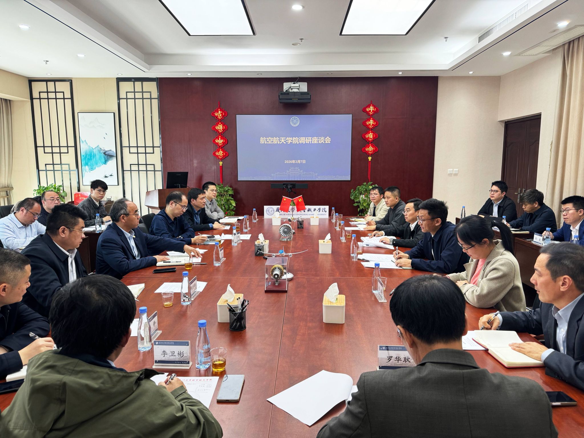 3月7日上午,校长、中国科学院院士胡文平带队调研航空航天学院,实地考察学院建设情况,并与学院党政领导班子、系/中心主任及教师代表座谈交流。学院党委书记袁国柱主持调研座谈会。