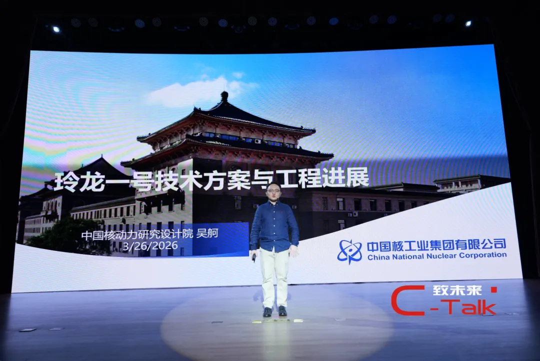 吴舸介绍了“玲龙一号”小型模块化反应堆的技术方案与工程进展。在双碳与能源安全背景下,大型核电受厂址限制,具备“小、快、灵”特点的小型模块化堆成为重要补充,可工厂预制、灵活部署,安全性更高、应用场景更广。当前全球小堆研发火热,主流为一体化压水堆,我国在该领域处于世界领先。“玲龙一号”(ACP100)是中核集团自主研发的多用途小堆,采用一体化设计与非能动安全系统,安全性优于三代大堆,可实现72小时无干预安全运行,是全球首个通过 IAEA 通用审查的小堆技术。该示范工程于海南昌江建设,现已完成冷试,进入调试阶段。演讲指出,小堆与大堆互补,可用于供电、供热、海水淡化、海上能源保障等。