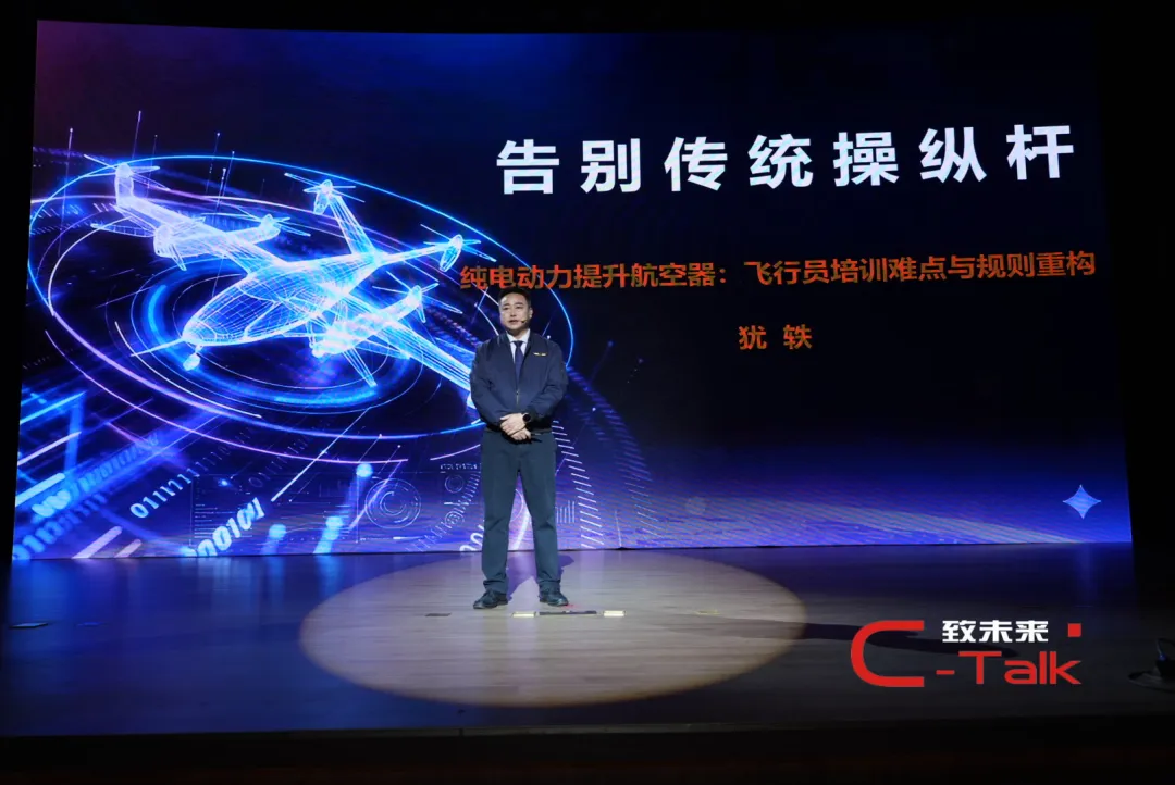 作为兼具直升机与固定翼飞行经验的专业从业者,犹轶结合自身专业与行业实践,聚焦 eVTOL 范畴内的动力提升航空器,深入解析纯电垂直起降航空器的操纵特性、飞行员培训难点与行业规章重构等问题。演讲中,他对比传统直升机与纯电动力提升航空器的操纵差异,重点介绍了SVO简化飞行操纵系统的优势与隐患,并指出纯电航空器面临的电量消耗不均、备份电量标准难以界定等运行困境。在提及国际民航监管机构针对新型航空器调整规章的实践时,他强调试飞培训机构需平衡局方监管与企业诉求,通过试飞数据为飞行员画像满足KSA相关要求。最后,他强调简化操纵不等于简化对飞行的敬畏,呼吁大家要坚守敬畏职责、规章与生命。