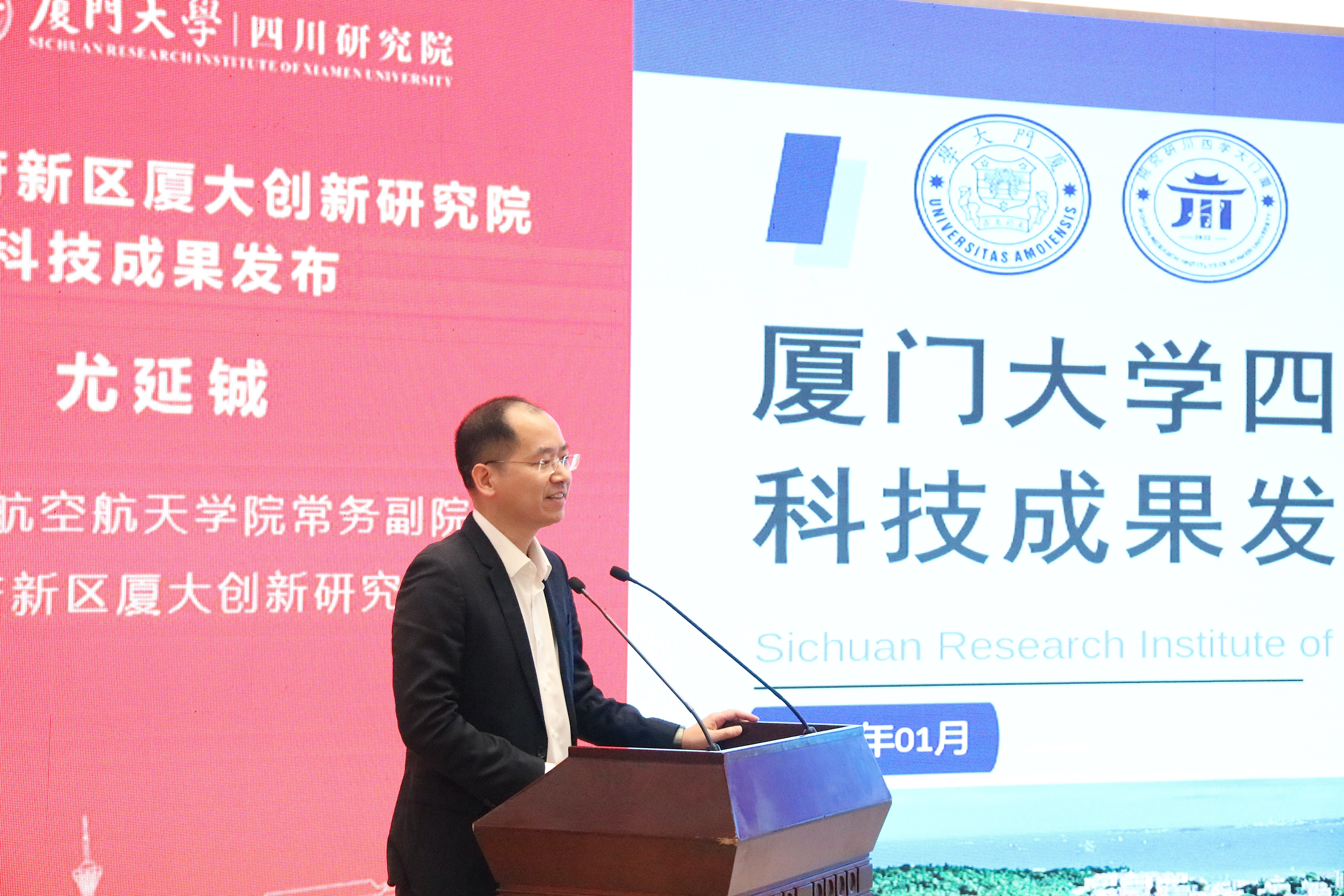 活动同步发布四川天府新区厦大创新研究院第一批科技成果。航空航天学院常务副院长、四川天府新区厦大创新研究院院长尤延铖围绕研究院基本概况、重点建设内容、首批科技成果对标方向、低空经济产业透视等方面进行详细解读,并带来GF-2000通用无人飞行平台、eVTOL电动垂直起降飞行器等多个前沿性科技项目成果展示。