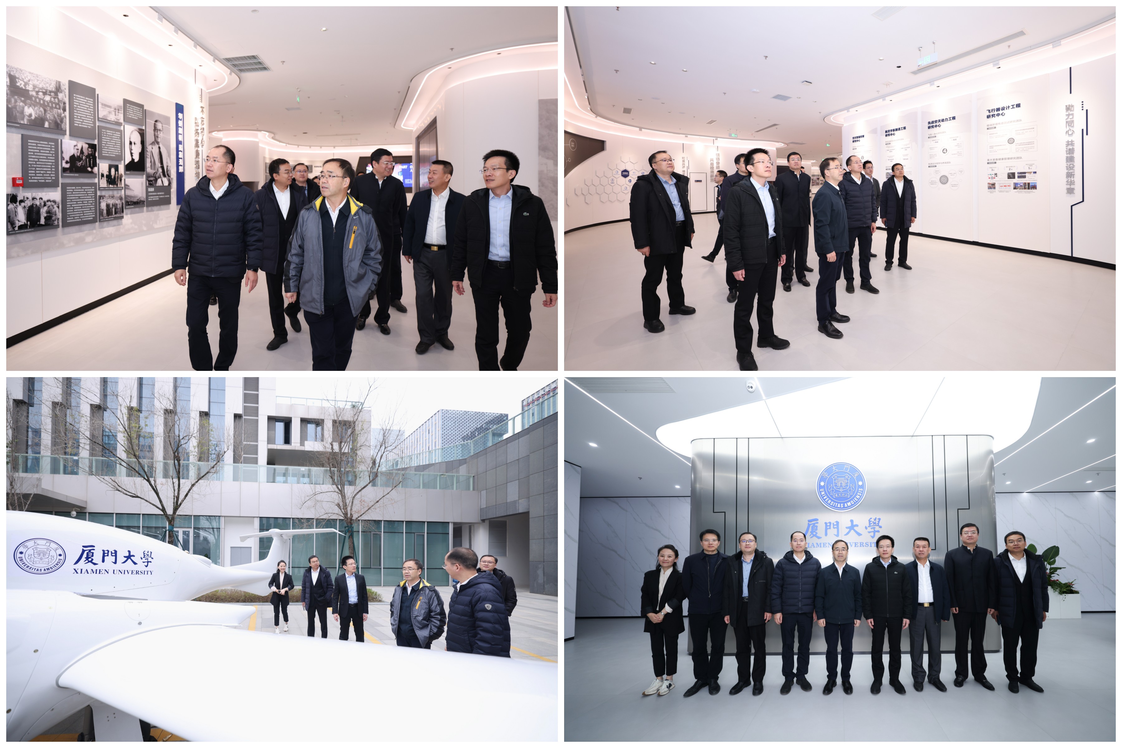 随后,张宗益一行来到四川天府新区厦大创新研究院参观研究院展厅、办公区和校友之家,聆听研究院建设发展愿景、科研布局架构和人才队伍建设情况,并现场观摩了GF-2000通用无人飞行平台实物。张宗益对研究院所取得的成果表示肯定,期待研究院后续在重大科研项目、重大科研成果、重大科研平台取得更多突破和成就。