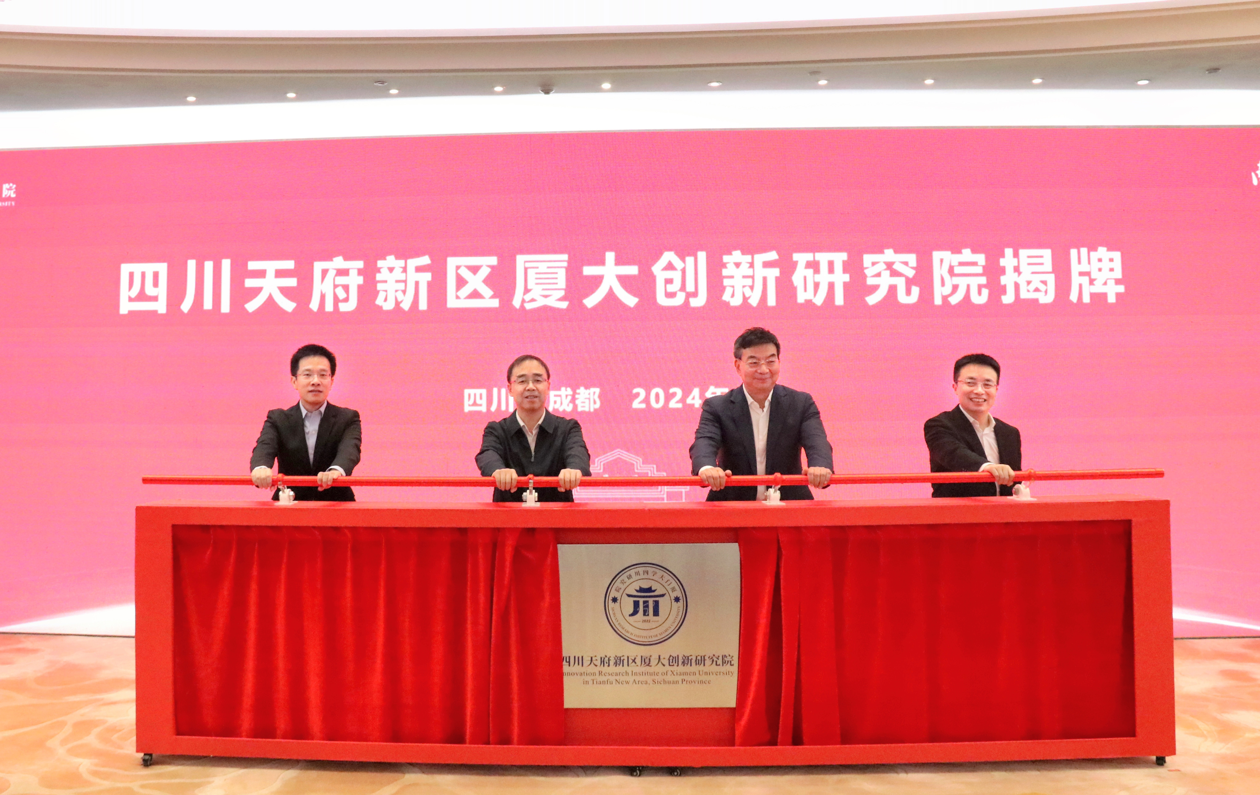 张宗益、李国贵、鲜荣生和史大林共同为四川天府新区厦大创新研究院揭牌。该研究院是厦门大学与天府新区联合建设的新型事业单位,是实行企业化管理的新型研发机构,目前设有四大研究中心、一人才培养培育基地和一创新创业平台。研究院立足四川省经济社会与天府新区发展需求,以服务区域发展和产业重大需求为导向,依托厦门大学优质教学、科研资源,搭建航空航天、人工智能、能源材料、海洋重大装备等领域产业化发展的技术创新平台,致力于打造成为四川省促进人才、项目、平台高效融合的创新载体和集聚高水平技术创新、成果转化与产业化的重要基地。