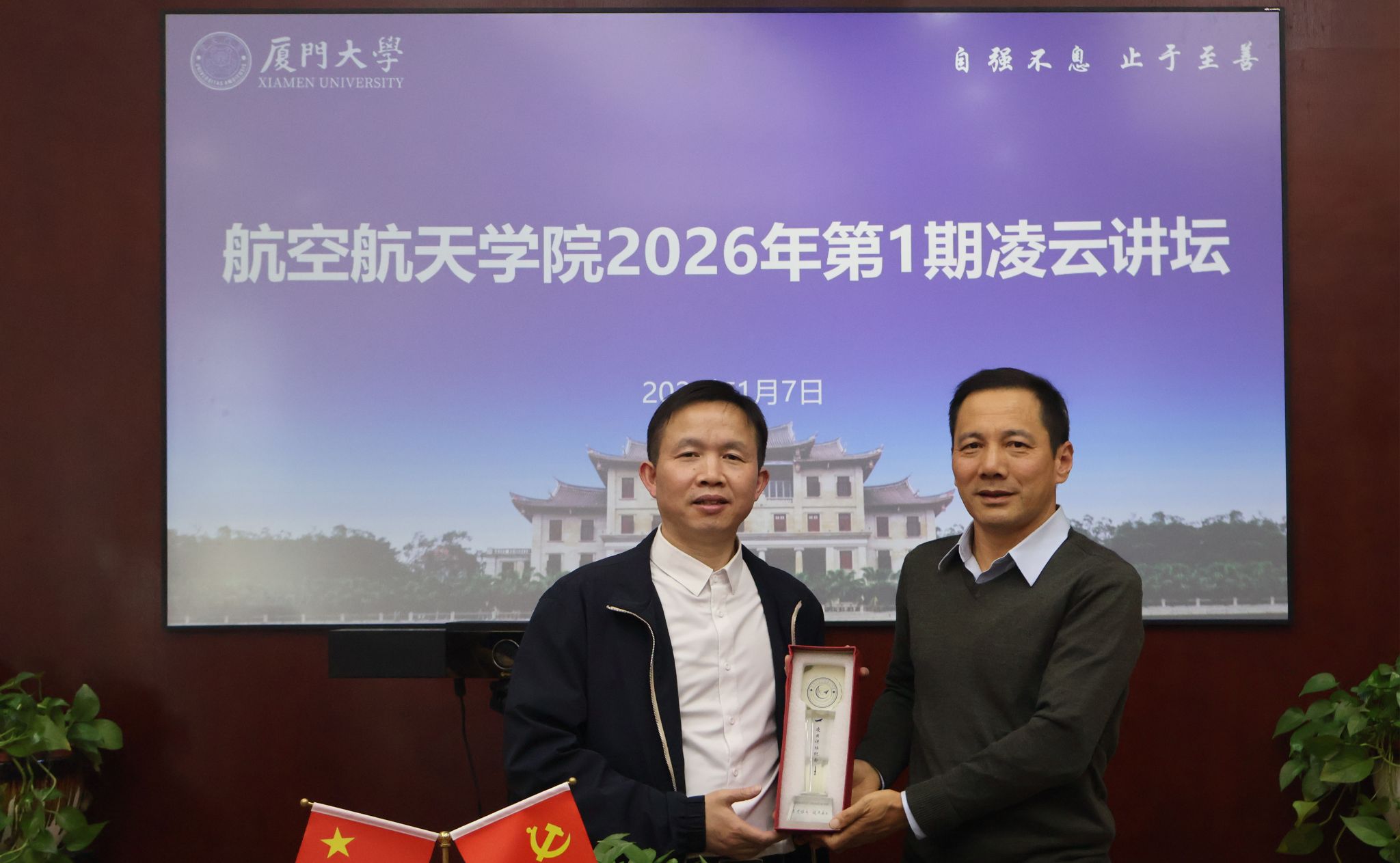 为搭建高端学术交流平台、凝聚科研创新合力,1月7日下午,航空航天学院2026年第1期“凌云讲坛”在学院501会议室举行。南京航空航天大学能源与动力学院院长、国家自然科学基金青年A类项目获得者谭慧俊教授应邀担任主讲嘉宾。厦门大学党委常委、副校长尤延铖教授主持活动。