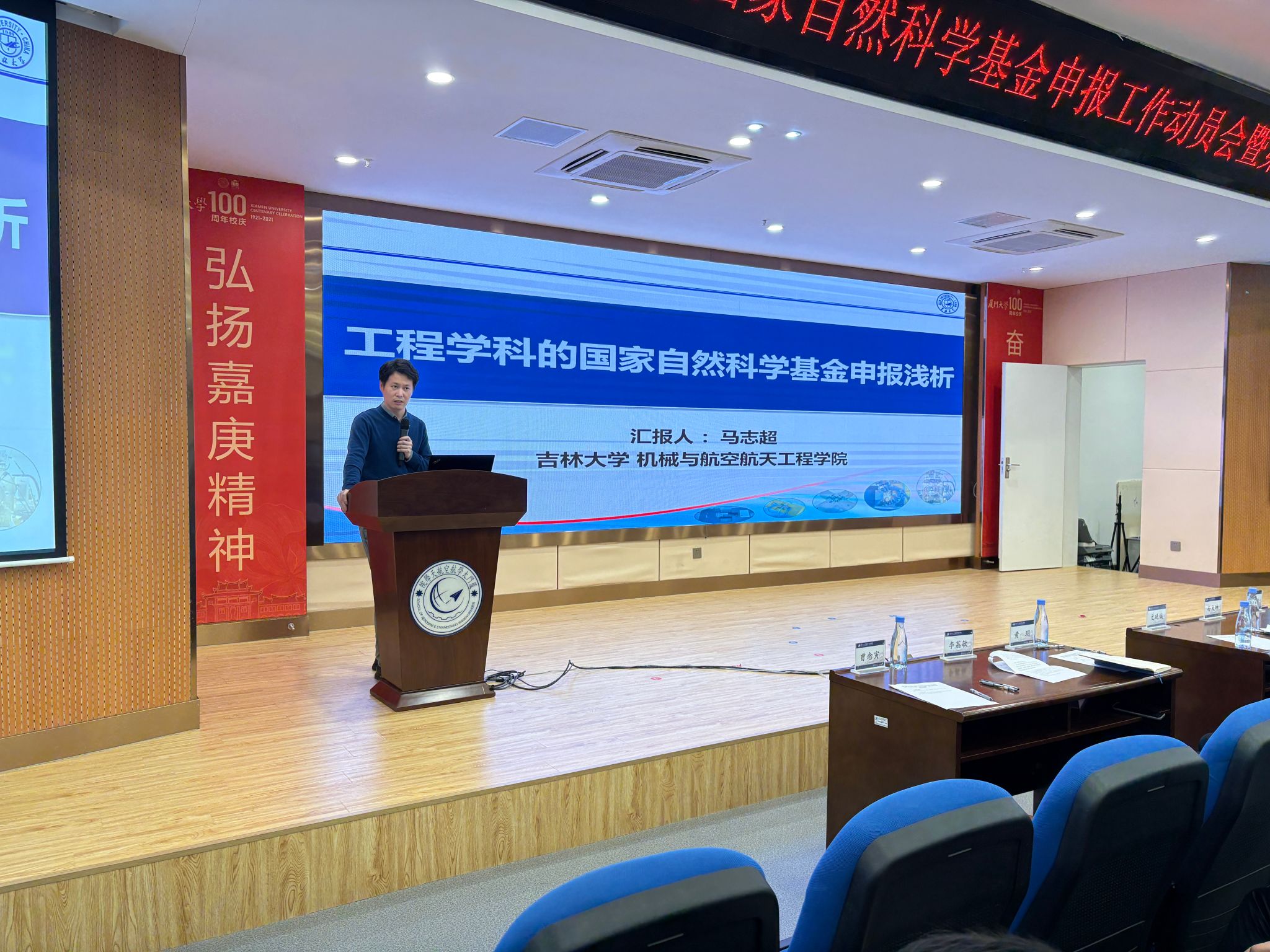 北京航空航天大学能源与动力工程学院副院长、国家自然科学基金青年A类项目获得者孙大坤教授,吉林大学机械与航空航天工程学院副院长、国家自然科学基金青年A类项目获得者马志超教授结合自身多年基金申请经验展开详细介绍,为与会者带来宝贵指导。孙大坤以“基金项目申报交流——走出属于自己的‘路’”为题,从“选题契合国家战略、方案凸显创新价值、论证彰显科学严谨”三个维度,细致剖析了基金申报的核心逻辑与实战技巧。马志超从自身基金申报经历出发,深度解析工程学科的国家自然科学基金申报核心逻辑,提出“政策对接—前沿聚焦—问题凝练”路径,提供兼具系统性与实操性的申报参考。两位专家兼具理论高度与实践深度的见解引发全场共鸣。