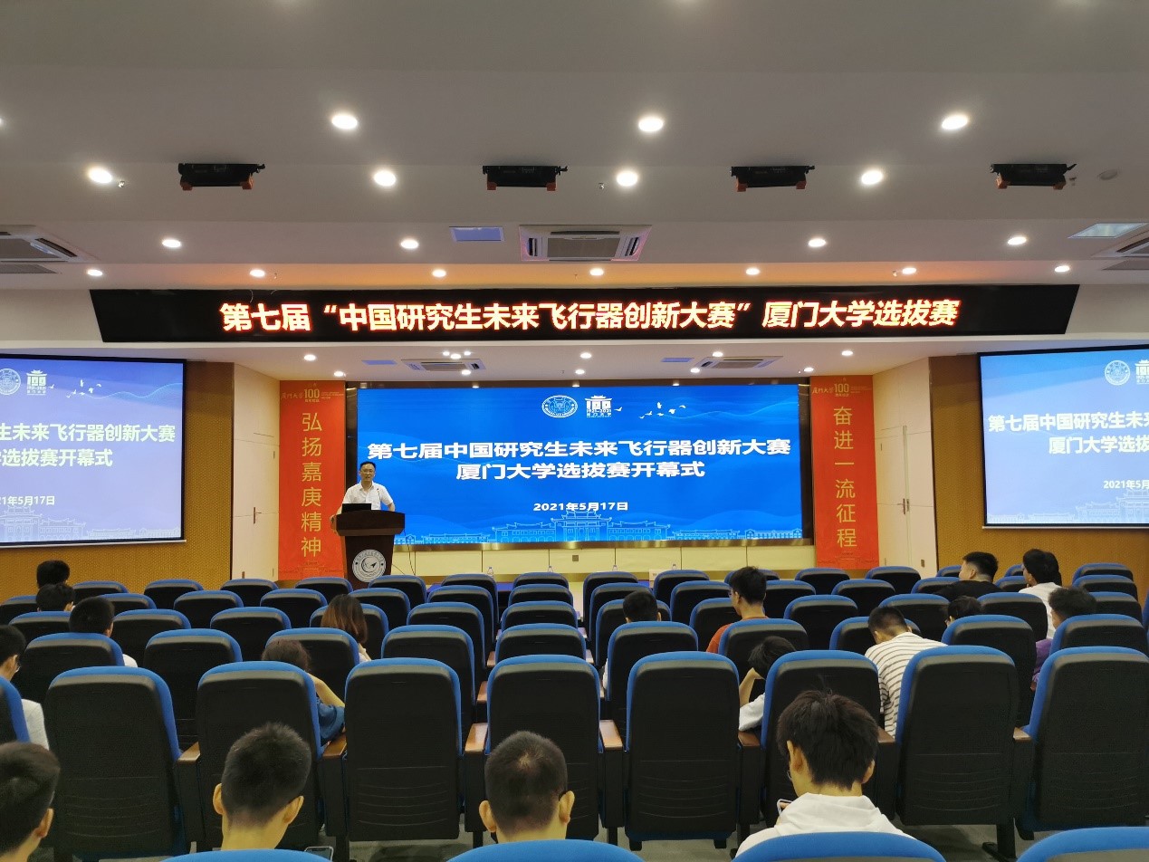 5月17日中午12点30,“第七届中国研究生未来飞行器创新大赛暨厦门大学选拔赛”开幕式在厦门大学航空航天学院大报告厅顺利举办。厦门大学研究生院培养与管理办公室苏月英老师,厦门大学航空航天学院党委副书记张晴老师,厦门大学航空航天学院飞行器系副主任/评审专家孙洪飞教授,厦门大学航空航天学院团委副书记倪建超老师以及厦门大学航空航天学院殷春平老师出席了本次开幕式。