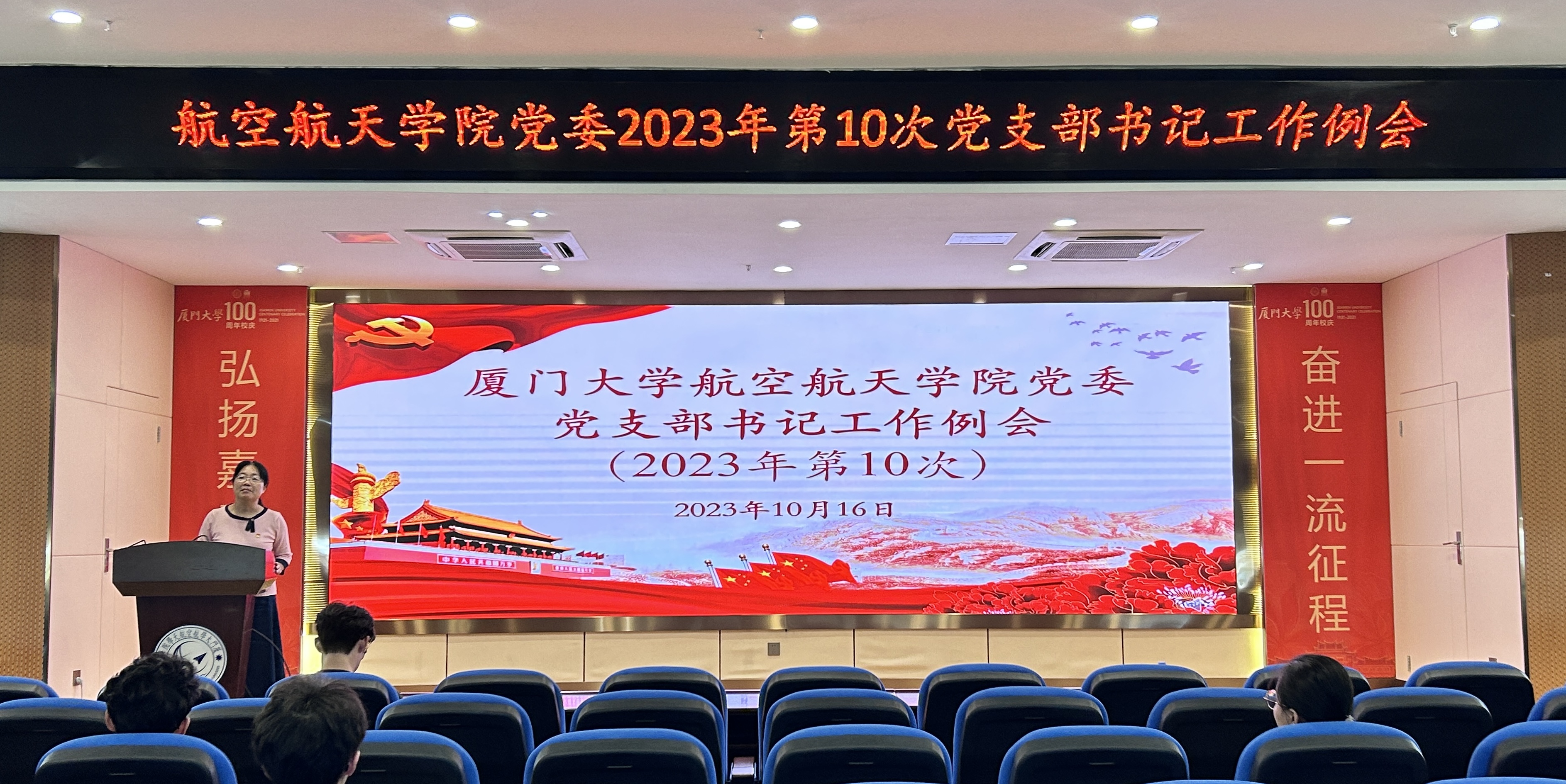 10月16日下午,航空航天学院党委在学院报告厅召开2023年第十次党支部书记工作例会。学院党委副书记林蔚,党委组织员张琳、党务秘书戴丹妮,以及全体党支部书记参加会议。
