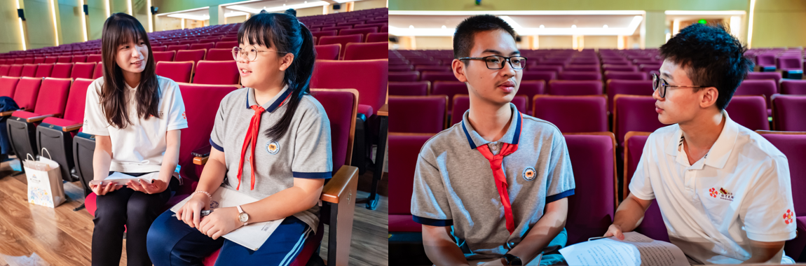 在“共话思政未来”环节,扬才先锋党支部党员对科技中学学生代表进行交流访谈,通过细致的调查研究深入了解同学们对于大中小学思政课一体化建设的所思所想与意见建议,以期设计出更加贴近学生思想、学习和生活实际,让学生爱听爱学、听懂学会的优质思政课程。